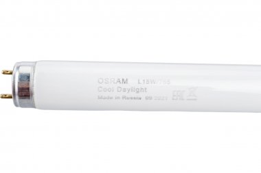 Линейная люминесцентная лампа OSRAM Т8 BASIC трубчатой формы с цоколем G13. Индекс цветопередачи Ra≥60.