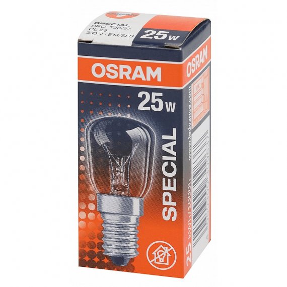Лампы накаливания трубчатой формы для холодильного оборудования. Бытовая галогенная лампа OSRAM SPECIAL T/FRIDGE 25Вт с цоколем Е14. Лицензиатом торговой марки OSRAM в общем освещении является компания LEDVANCE. Используется для холодильников и швейных машин. Лицензиатом торговой марки OSRAM в общем освещении является компания LEDVANCE.