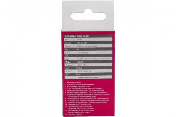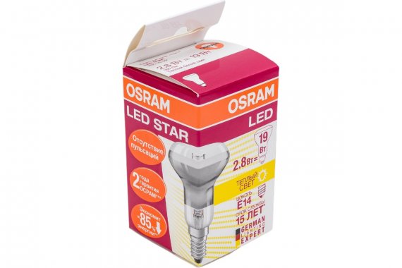 Технические характеристики Osram STAR LED R50 2.8Вт E14 180 Лм 2700 К Теплый белый свет 4058075055414