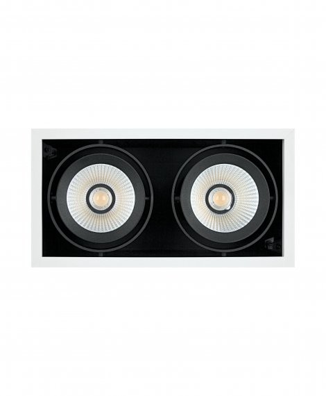 Поворотный встраиваемый светодиодный светильник LEDVANCE SPOT MULTI мощностью 2 х 30 Вт в алюминиевом карданном корпусе, состоящий из двух светодиодных модулей. Световой поток 5400 лм.