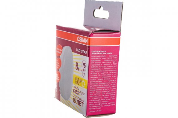 Технические характеристики Osram STAR LED GX53, 8Вт, GX53, 800 Лм, 2700 К, теплый белый свет 4058075210929