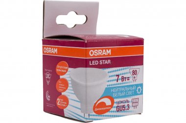 Технические характеристики Osram DIM MR16 7Вт GU5.3 600 Лм 4000 К Нейтральный белый свет 4058075229037