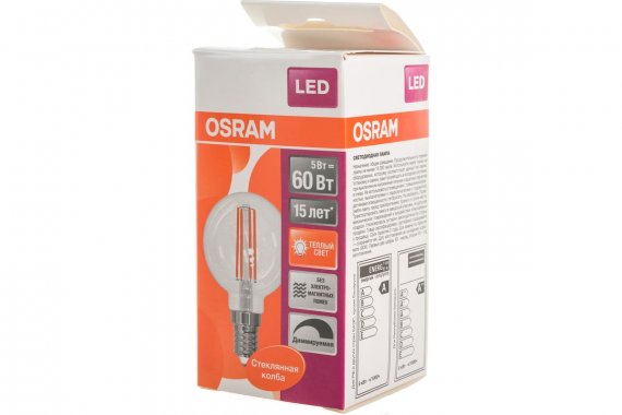 Технические характеристики Osram DIM STAR LED P Шар 5Вт E14 520 Лм 2700 К Теплый белый свет 4058075230415
