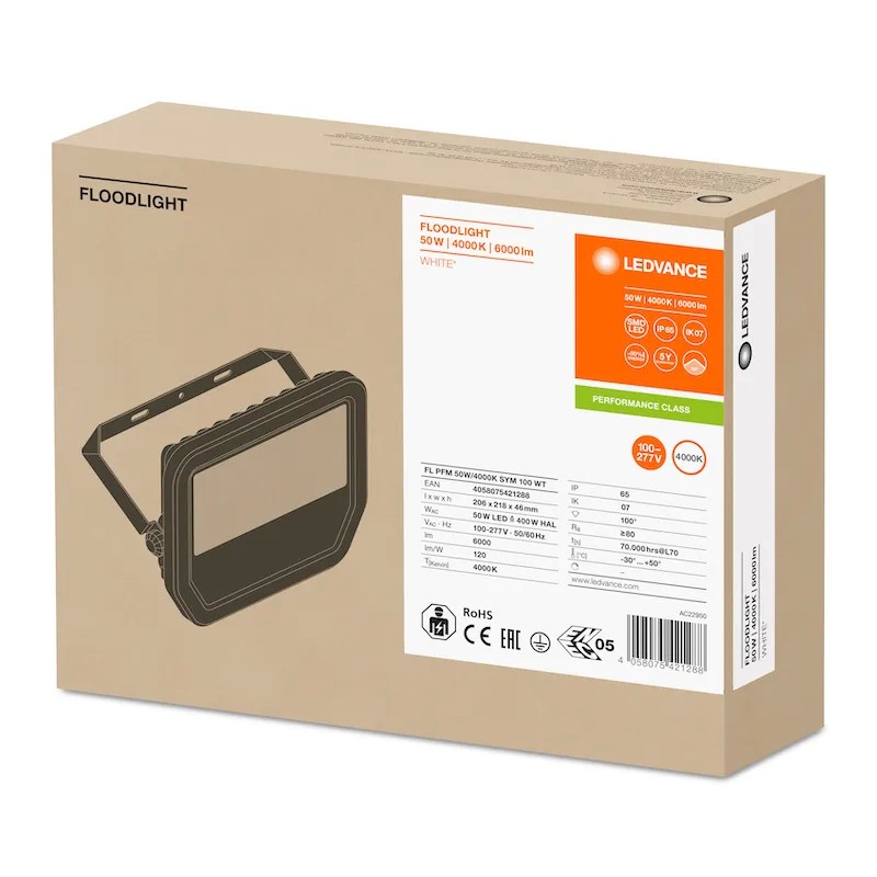 Светодиодный прожектор LEDVANCE PERFORMANCE G3 c мощностью 50Вт. Светоотдача 120лм/Вт.