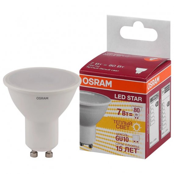 Светодиодная лампа GU10 от Osram обеспечивает яркий и эффективный свет. Она обладает мощностью 7 Вт и цветовой температурой 3000 К, что создает приятную атмосферу в помещении. Лампа имеет гарантию 2 года и подходит для использования в светильниках с цоколем GU10.