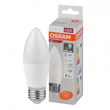 Лампа светодиодная OSRAM LED Value свеча (B), 800лм, 10Вт (замена 75Вт), 3000К, E27