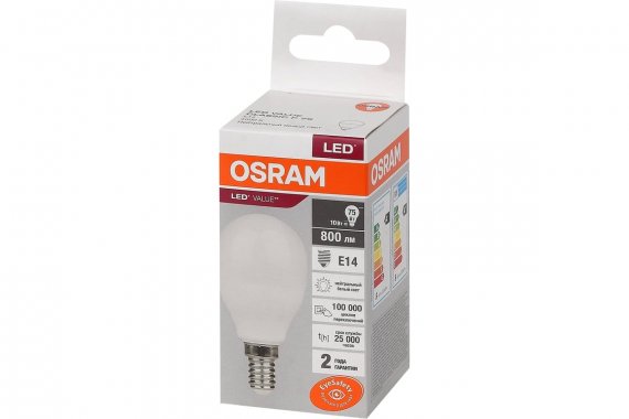 Светодиодная лампа OSRAM LED Value шар (P) 10Вт 4000К E14