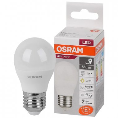 Лампа светодиодная OSRAM LED Value шар (P), 560лм, 7Вт (замена 60Вт), 3000К, E27