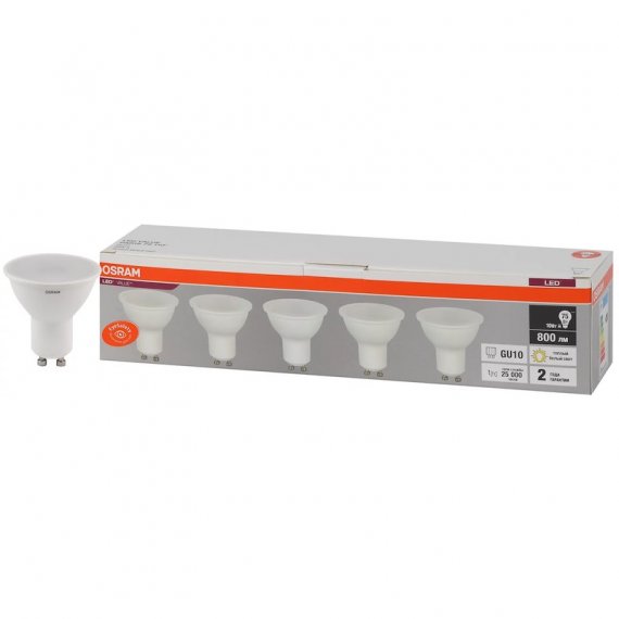 Выгодный пак OSRAM LED VALUE 5 штук PAR16 8Вт 3000К GU10
