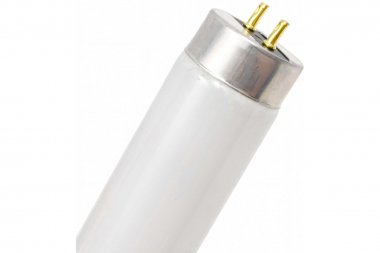 Линейная люминесцентная лампа Osram LUMILUX T8 трубчатой формы, с белой стеклянной колбой и цоколем G13.
