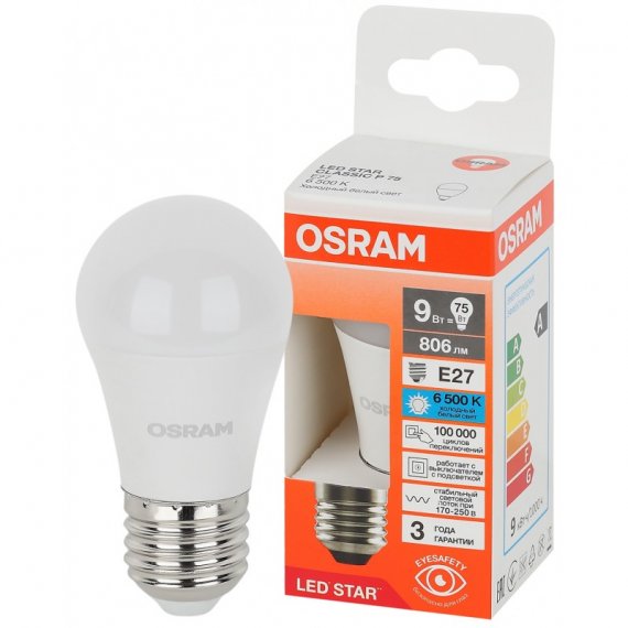 Светодиодная лампа OSRAM LED Star - это энергоэффективное решение для освещения помещений. Она имеет мощность 9 Вт и способна заменить традиционную лампу мощностью 75 Вт. Холодный белый свет цветовой температуры 6500 К создает приятную атмосферу в помещении. Лампа оснащена цоколем E27 и имеет угол пучка 180°. Производитель предоставляет гарантию на продукт сроком 1 год.
