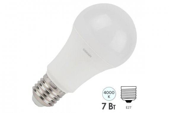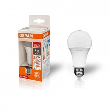 Лампа светодиодная OSRAM LED Star груша, 600лм, 7Вт (замена 60Вт), 4000К, 12-36В.
