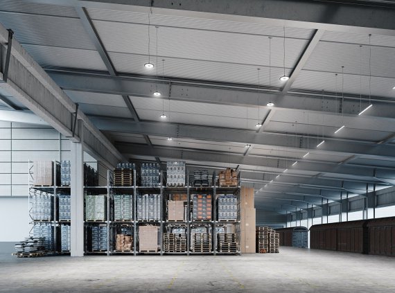 Применяется для освещения складских комплексов, производственных и промышленных цехов и любых других помещений с высокими потолками.