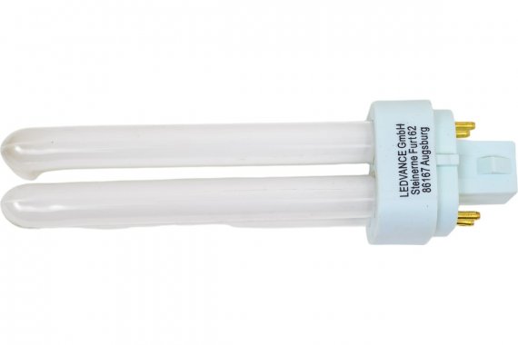Компактная люминесцентная лампа неинтегрированная OSRAM DULUX D/E 18Вт с штырьковым одиночным четырехконтактным цоколем G24Q-2 и двухоборотными колбами.
