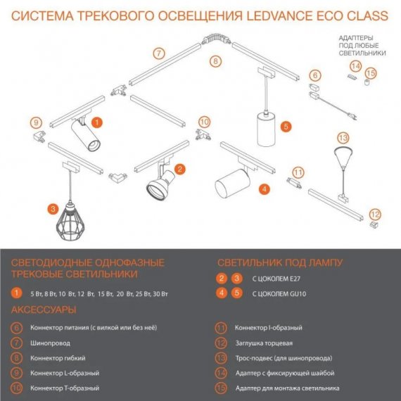 - Широкий ассортимент светильников и аксессуаров для монтажа всей трековой системы