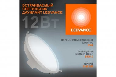 Osram 4099854251313 Светильник светодиодный встраиваемый DL 12 Вт 6500К 1140Лм IP44