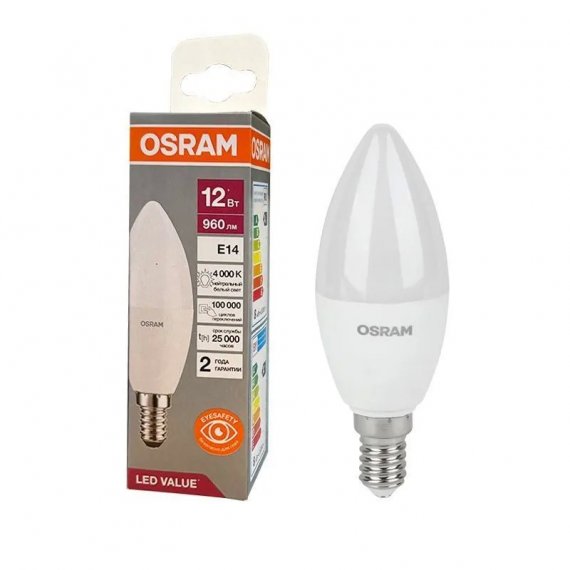 Лампа светодиодная OSRAM LED Value свеча (В), 960лм, 12Вт (замена 100Вт), 4000К, E14