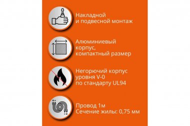 Провод 1м для удобства монтажа. Сечение жилы: 0,75 мм (ГОСТ IEC 60598-1-2017)