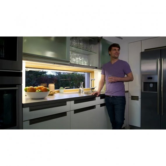 - Оснащен вилкой питания, кабельным разъемом и линейным адаптером для подключения дополнительных светильников