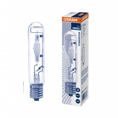 Металлогалогенная лампа OSRAM HQI-T мощностью 250 Вт с кварцевой горелкой, прозрачной стекляной колбой и цоколем Е40.